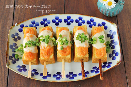 厚揚げがもっちり~明太子チーズ焼き★トースターで簡単おつまみ