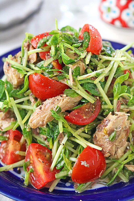 切ってあえるだけ!5分で簡単豆苗とサバ缶のヘルシーサラダ
