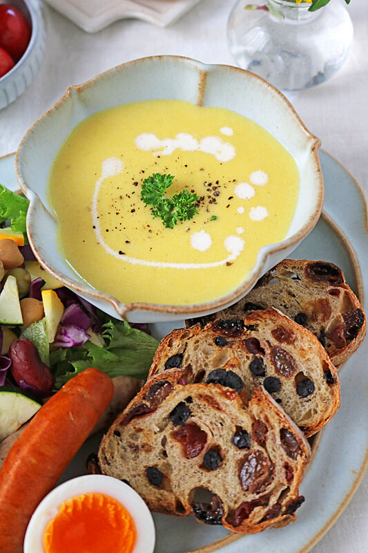 チョップドサラダとドライフルーツたっぷりハードパン、