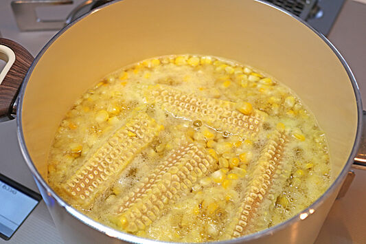 2.鍋に水を加えて沸騰させ、1のとうもろこし、