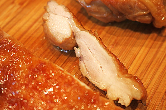 1.鶏もも肉は包丁で筋切りをし、均一な厚さにする。