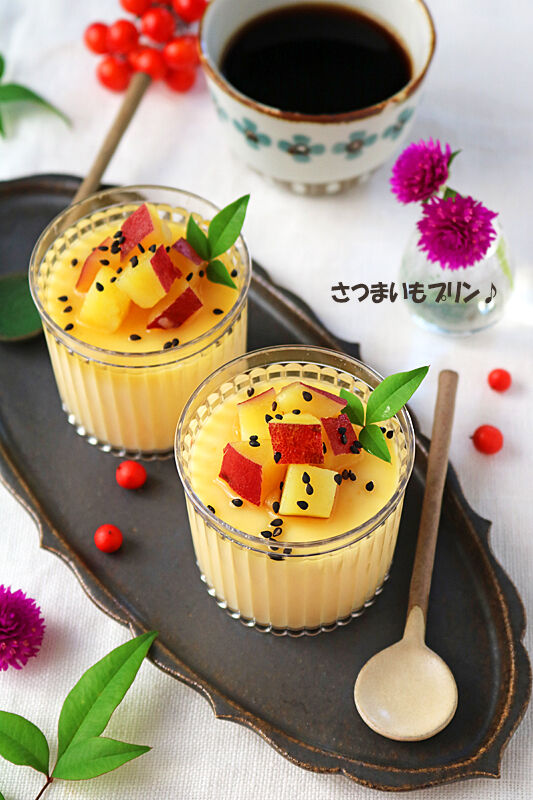 オーブンも生クリームを使わず簡単!さつまいもプリンです~♪