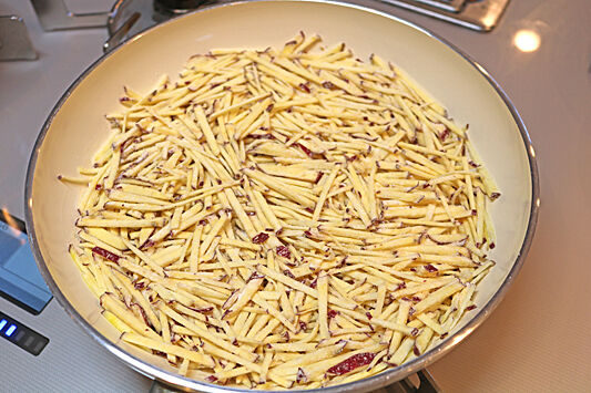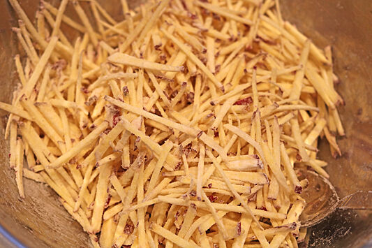 千切りにしたさつまいもに、塩と片栗粉をまぶして