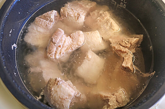 炊飯器で豚肉だけで炊いて、脂を除いてから