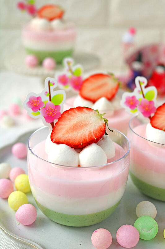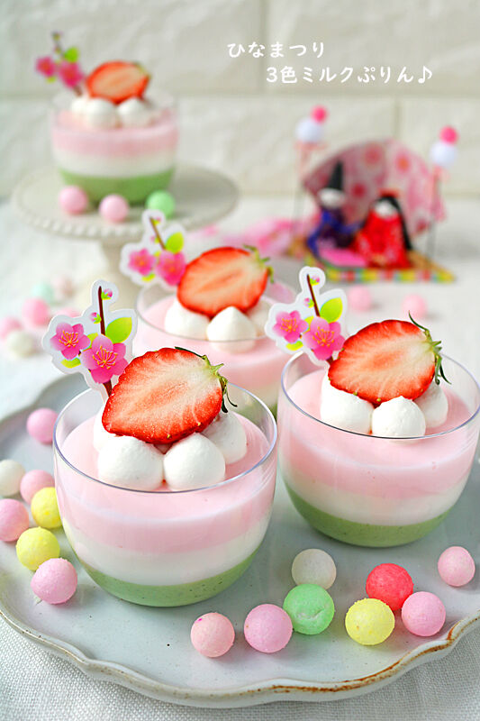ひな祭りというと、菱餅風の3色カラーですね♪