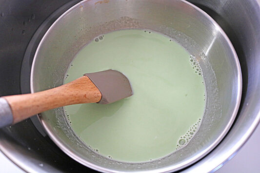 ふるった抹茶を熱湯でダマがなくなるまで混ぜ合わせる。
