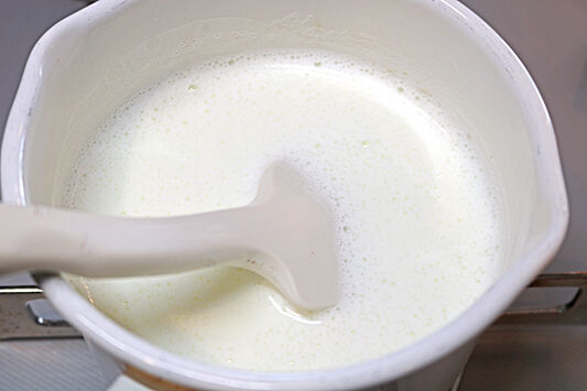 1.小鍋に牛乳とグラニュー糖を加えて沸騰直前くらいまで温めて