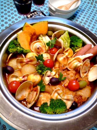 スープまでおいしい☆地中海風トマト鍋!! 2009年11月21日 今日はトマト鍋!! 貝やオリーブなどを入れて地中海風に・・・ ベースのスープはトマト缶に玉ねぎのすりおろしとチーズを入れて 甘くてまろやかなトマトスープ!! あさりや鶏肉から出るいいダシが加わって とってもおいしい~!! かぼちゃやキャベツ、ペコロス、マッ ... 続きを読む