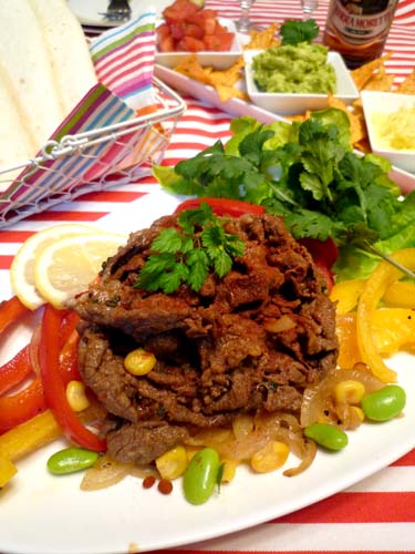 スパイシーメキシカンファヒータ☆牛薄切り肉で簡単に!! 2010年01月20日 今日はメキシコ料理!! スパイスが入った液でお肉をマリネしてグリルする スパイシーなファヒータ!! 通常は2~3時間マリネするのですが・・ 今回は牛薄切り肉を使用しているので、 漬け込み時間短縮で5分とお手軽! あとはフライパンで焼いて出来上がり~!! 簡 ... 続きを読む