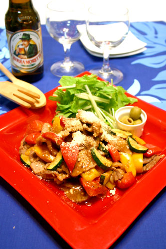 夏野菜とカルビのイタリア風☆こくうま~!! 2010年08月20日 今日はスタミナカルビ!! ついついお肉だけで焼くと食べすぎちゃうので・・ 焼き肉のタレにつけたカルビに、 ズッキーニやパプリカなど夏野菜と合わせて・・ 唐辛子とパルメザンチーズでピリっと辛めなこくうまに。 焼き肉のタレでイタリアのアラビアータ風~。 15分 ... 続きを読む