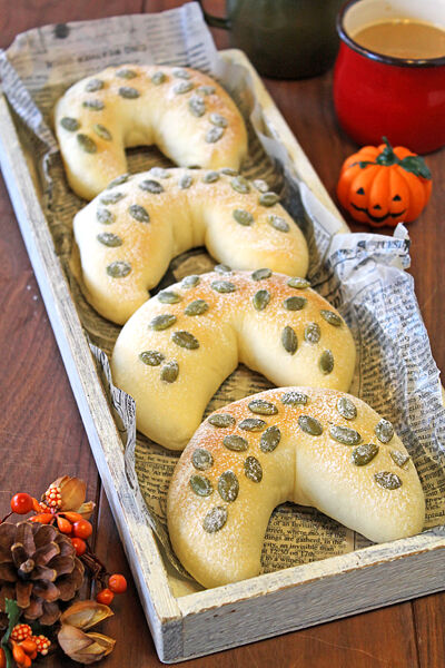オリーブとクリームチーズの三日月パン☆掲載のお知らせ 2013年11月02日 今日はだいぶ前の三日月パン~!! あら~~かぼちゃ置いてハロウィン風になってるわ~~ メイプル漬けのオリーブとクリームチーズ、胡桃を包み・・ かぼちゃの種を乗せて、三日月型に成形しました~!! かぼちゃの種がコリコリとおいしいお食事パン。 ワインのお供に ... 続きを読む