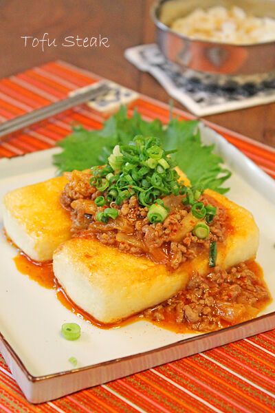 こくうまピリ辛豚キムチ豆腐ステーキ☆ 2014年03月06日 今日は豆腐ステーキ!! 挽肉とキムチを炒めた豚キムチソースをかけた こくうまな豆腐ステーキ!! お豆腐がぺろっといけちゃいます(^^♪ ボリューム満点なのでごはんにピッタリ! メインにもなれるお豆腐です(^^♪ 材料(2人分) 木綿豆腐・・・・・1丁 胡麻油 ... 続きを読む