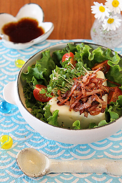 カリカリベーコンとかいわれのサラダ豆腐 2013年07月22日 今日は冷や奴(^^♪ 夏はやっぱり冷や奴ですね~。 今回はカリカリベーコンとたっぷり野菜を添えたボリューム満点 サラダ冷や奴!! ホットペッパービューティーの冷や奴特集の時に考えたもの(^_^;) 冷や奴にもサラダにも合うごま油風味のタレを かけていただきま~す! ... 続きを読む