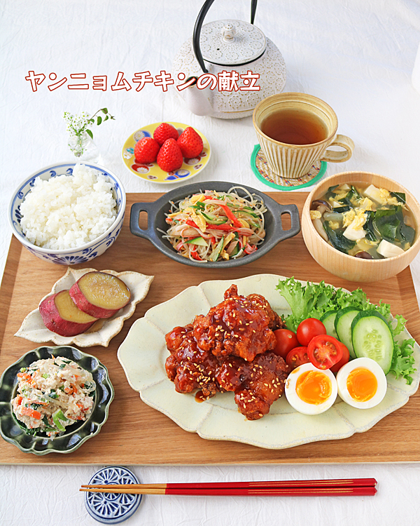ヤンニョムチキンと作り置きおかずの献立♪ 2024年05月05日 こんばんは~!今日はだい~~~ぶ前の甘辛が美味しいヤンニョムチキンの献立です~♪ヤンニョムチキンしめじと新玉ねぎの卵スープ中華風春雨サラダさつまいもの甘煮小松菜の白和え作り置きとリメイク料理の献立です~!ヤンニョムチキンはからあげのリメイク!沢山から揚げ ... 続きを読む