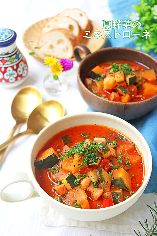 ズッキーニが美味しい♪夏野菜たっぷりミネストローネスープ♪ 2024年07月07日 こんばんは~!今日は冷蔵庫に余った夏野菜がたっぷり使える・・温でも冷でも美味しいミネストローネスープ。夏野菜で作るミネストローネは美味しいですね~。ズッキーニやかぼちゃが入るのが好き♪ズッキーニは後から加えると色合いがよく、歯ごたえも楽しめますね。かぼち ... 続きを読む