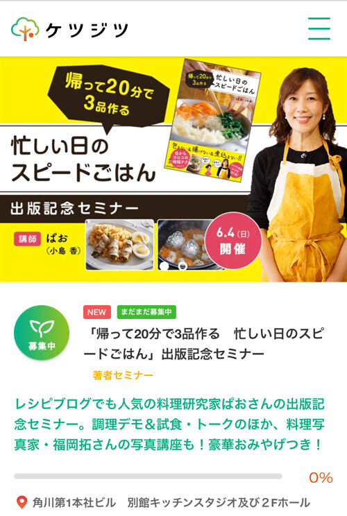 出版記念イベントのお知らせです。 2017年05月09日 こんばんは~!今日はドキドキドキドキ・・・。大切なお知らせをさせてくださいね。この度、新刊出版記念イベントを行わせていただくことになりました~!!「帰って20分で3品作る 忙しい日のスピードごはん」出版記念セミナー開催日:6月4日(日)13:00~15:00(受付開始12 ... 続きを読む
