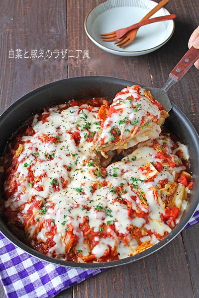 餃子の皮がもっちり白菜と豚肉のラザニア風☆フライパン1つで簡単 2015年11月10日 今日は白菜料理~!! フライパン1つで簡単に出来る白菜消費レシピです!! 白菜と豚肉に餃子の皮を重ねて・・・ トマトソースで煮込み、チーズがとろ~りとろけた 白菜と豚肉のラザニア風!! フライパンに全部重ねて・・・ 後はコトコト煮込むだけなので簡単〜!! ... 続きを読む