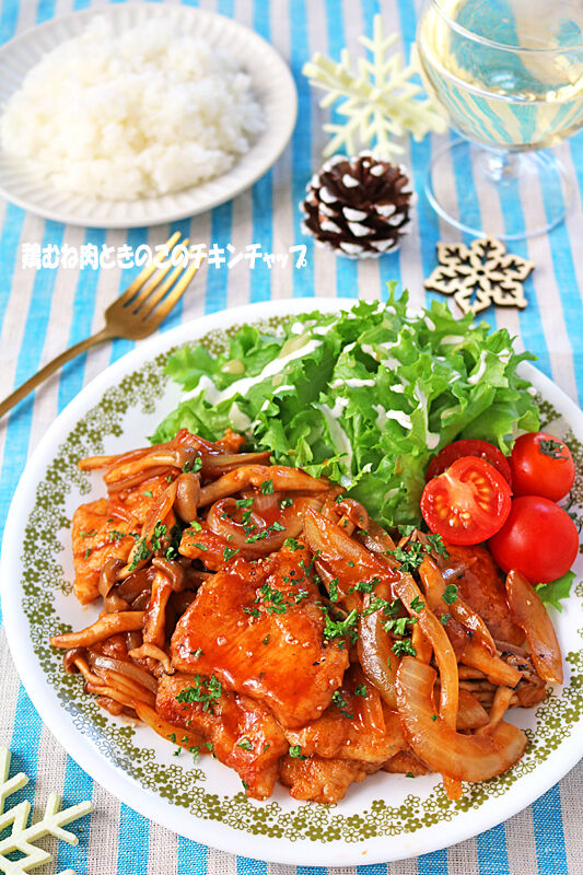 お弁当にもお勧め♪柔らか鶏むね肉ときのこのチキンチャップ♪ 2021年11月08日 こんばんは~!!今日はお肉柔らか~鶏むね肉で洋風おかず♪鶏むね肉ときのこのチキンチャップポークチャップのヘルシーな鶏むね肉バージョン♪パサつきがちな鶏むね肉は薄く削ぎ切りにして片栗粉をまぶしてからタレに煮絡めているのでとっても柔らか~!!ケチャップとウス ... 続きを読む