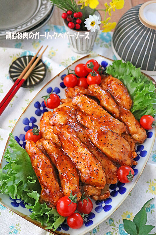 スティックで食べやすい♪鶏むね肉のガーリックペパーソース 2022年01月13日 こんばんは~!今日は鶏むね肉で簡単!お弁当やおつまみにピッタリスタミナおかず♪鶏むね肉のガーリックペパーソース鶏むね肉をスティック状にして焼き、バーベキューソースにブラックペパーがたっぷり入ったパンチのあるガーリックペパーソースを絡めました~!鶏むね肉を ... 続きを読む